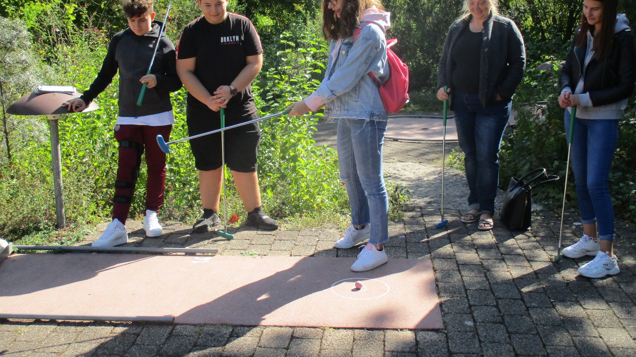Wir fahren mit dem Tram und Zug nach Dornach. Dort angekommen laufen wir hinunter zum Birspark, wo wir bis Mittag Minigolf spielen. |