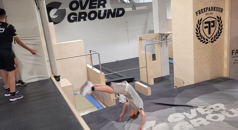 Programm | Wir sind in der Trendsporthalle Overground. Dort bekommt ihr von einem erfahrenen Trainer/einer erfahrenen Trainerin während 90 Minuten einen Einblick in die Welt von Ninja Warrior und Parkour und dürft im Anschluss daran noch etwas für euch in der Halle üben. |